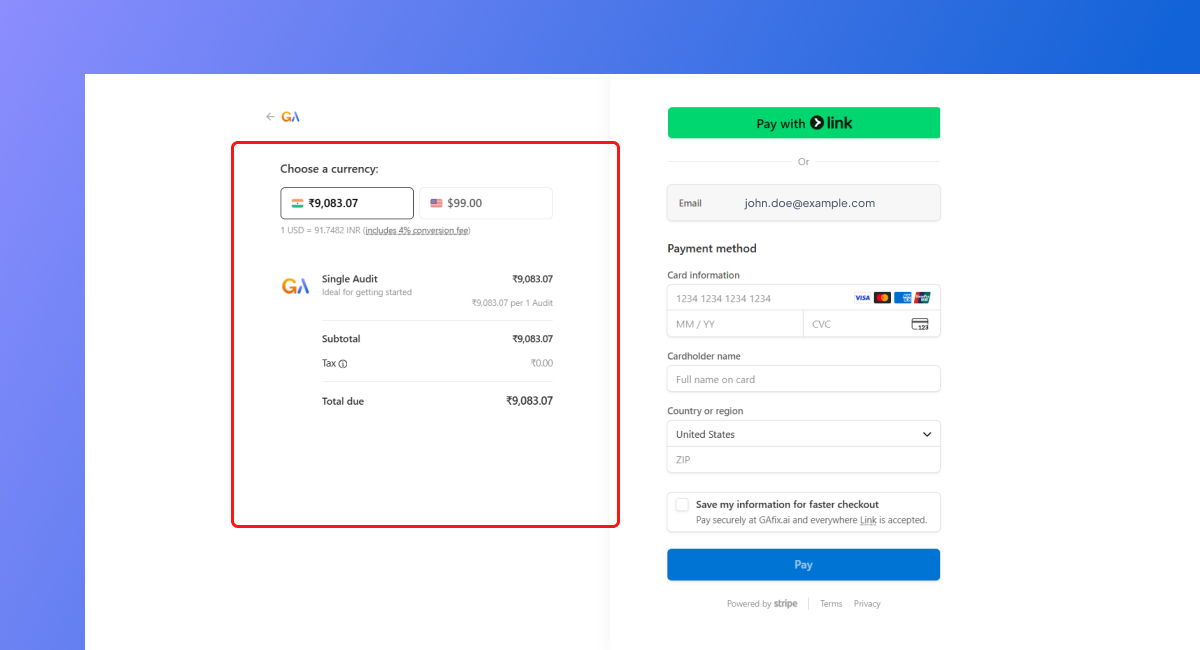 If you’re upgrading from the free version to a Pro plan on GAfix, here’s how to complete the payment process step by step.